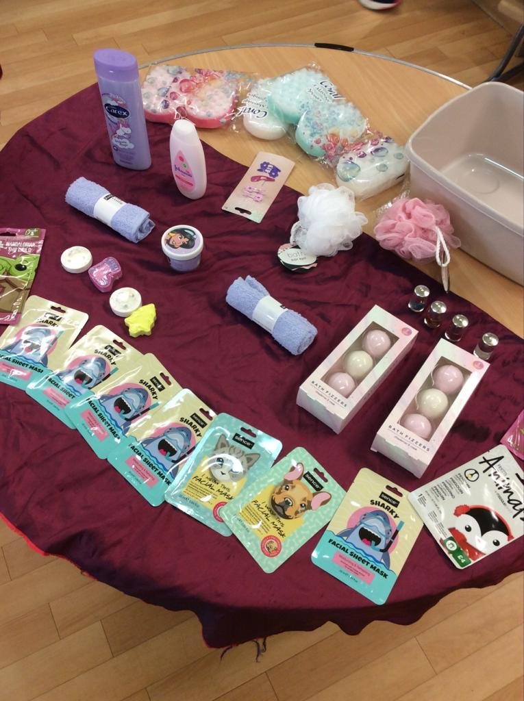 The children took turns in having their feet soaked in our foot spa with bath bombs and bubble bath having their hands and feet massaged, their nails painted and we lay down on beds to listen to some relaxing spa music, complete with cucumber eye masks! (Although we much preferred eating the cucumber than having them on our eyes!)