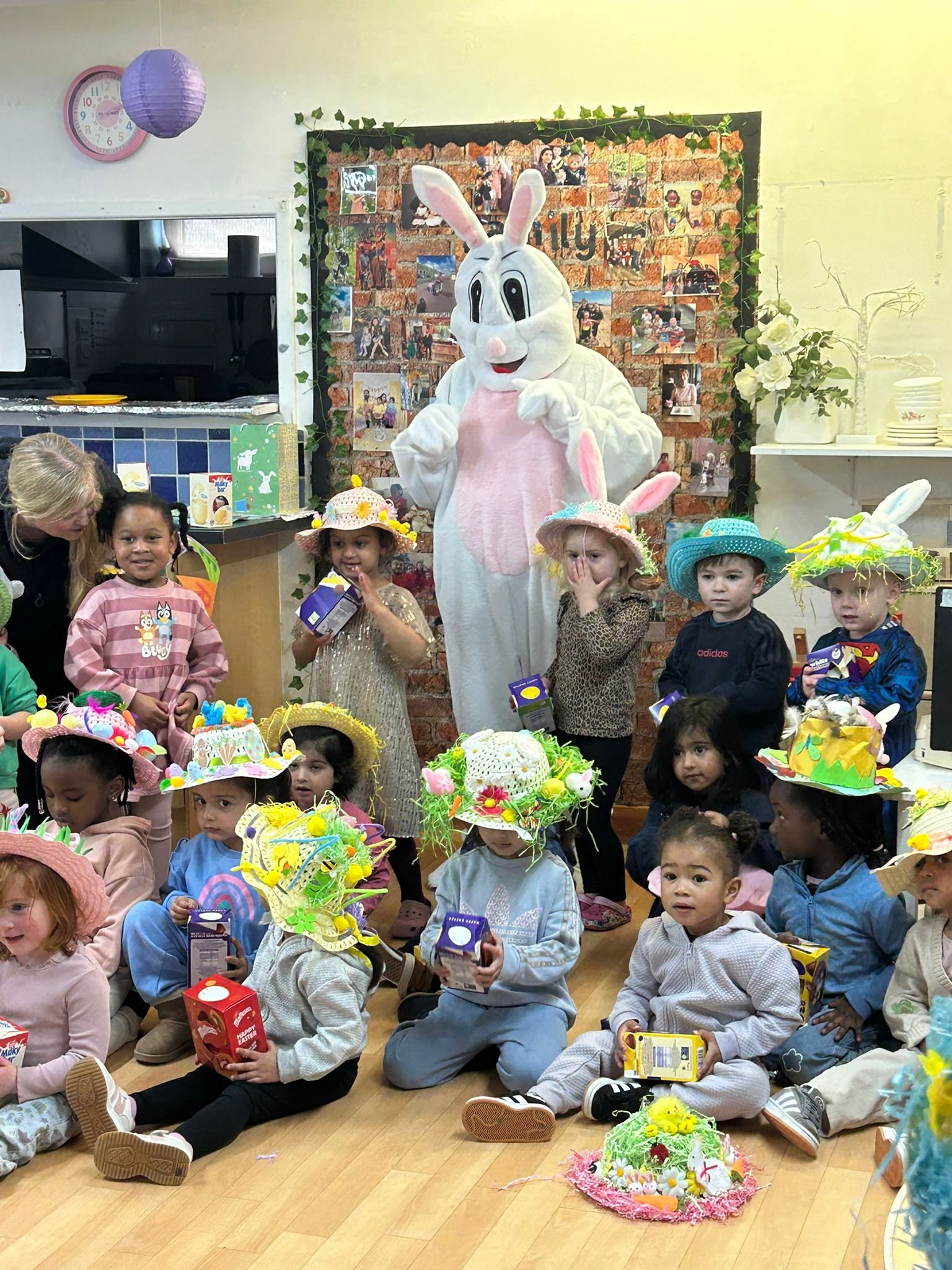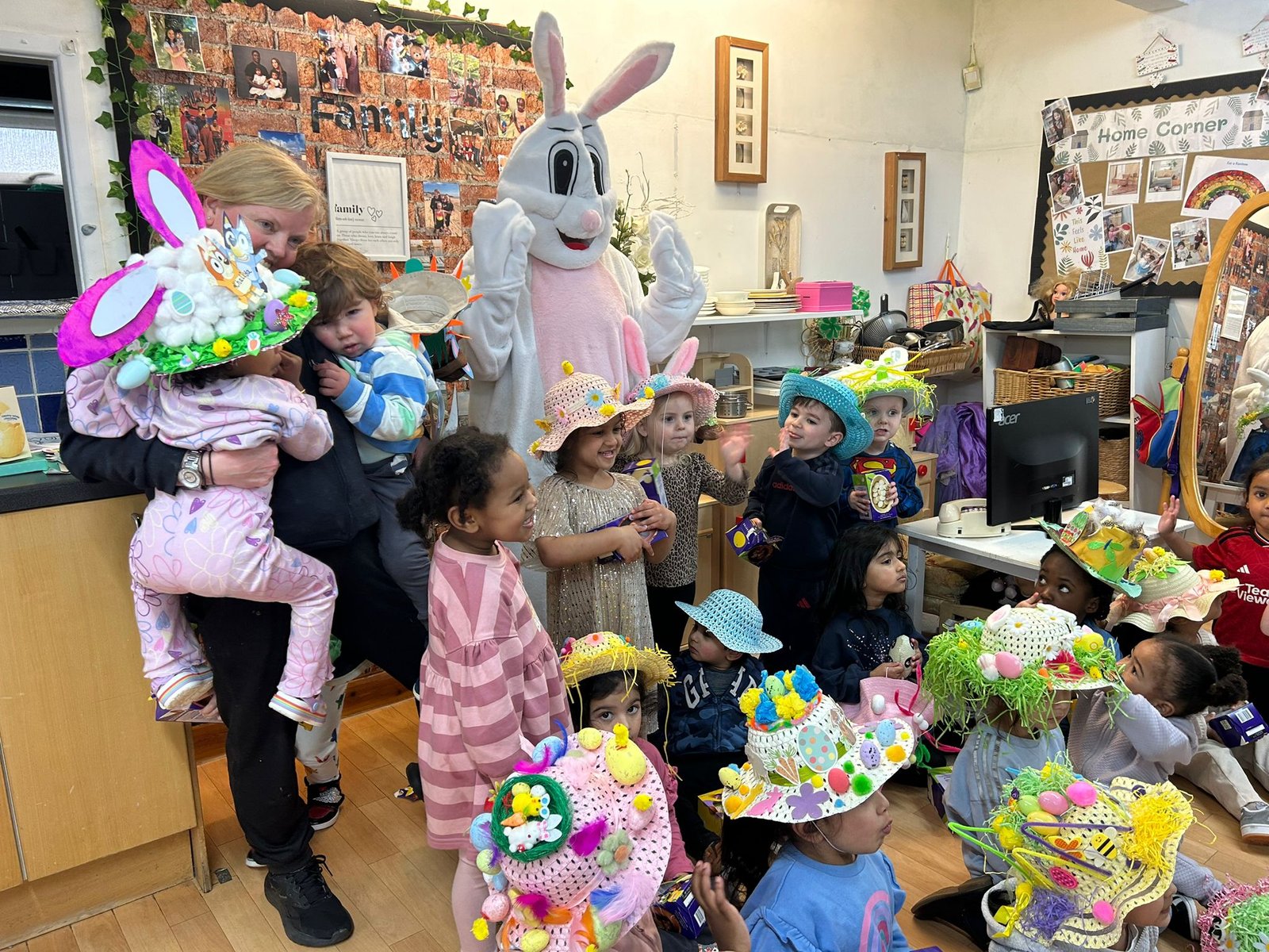 This afternoon we held our Easter bonnet parade. All the children made their bonnets at home with the help of their parents – they were absolutely wonderful!