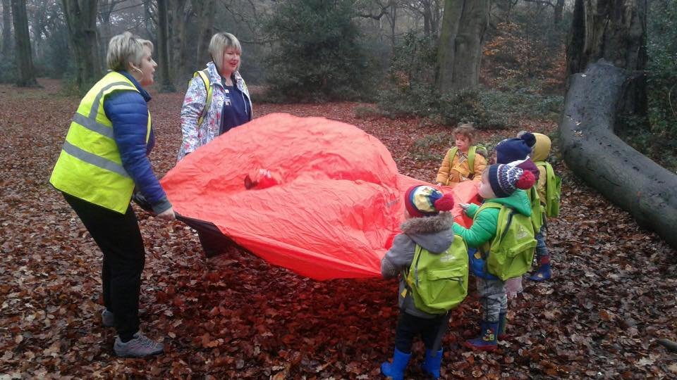 Our staff walk the children to Sutton Park using secure clip-on safety walk-o-diles. We take a toilet tent and provide warm water hand washing facilities, ensuring the children have privacy. Children go to Forest School in varied weather conditions (the splash suits help us!), with the exception of stormy weather.