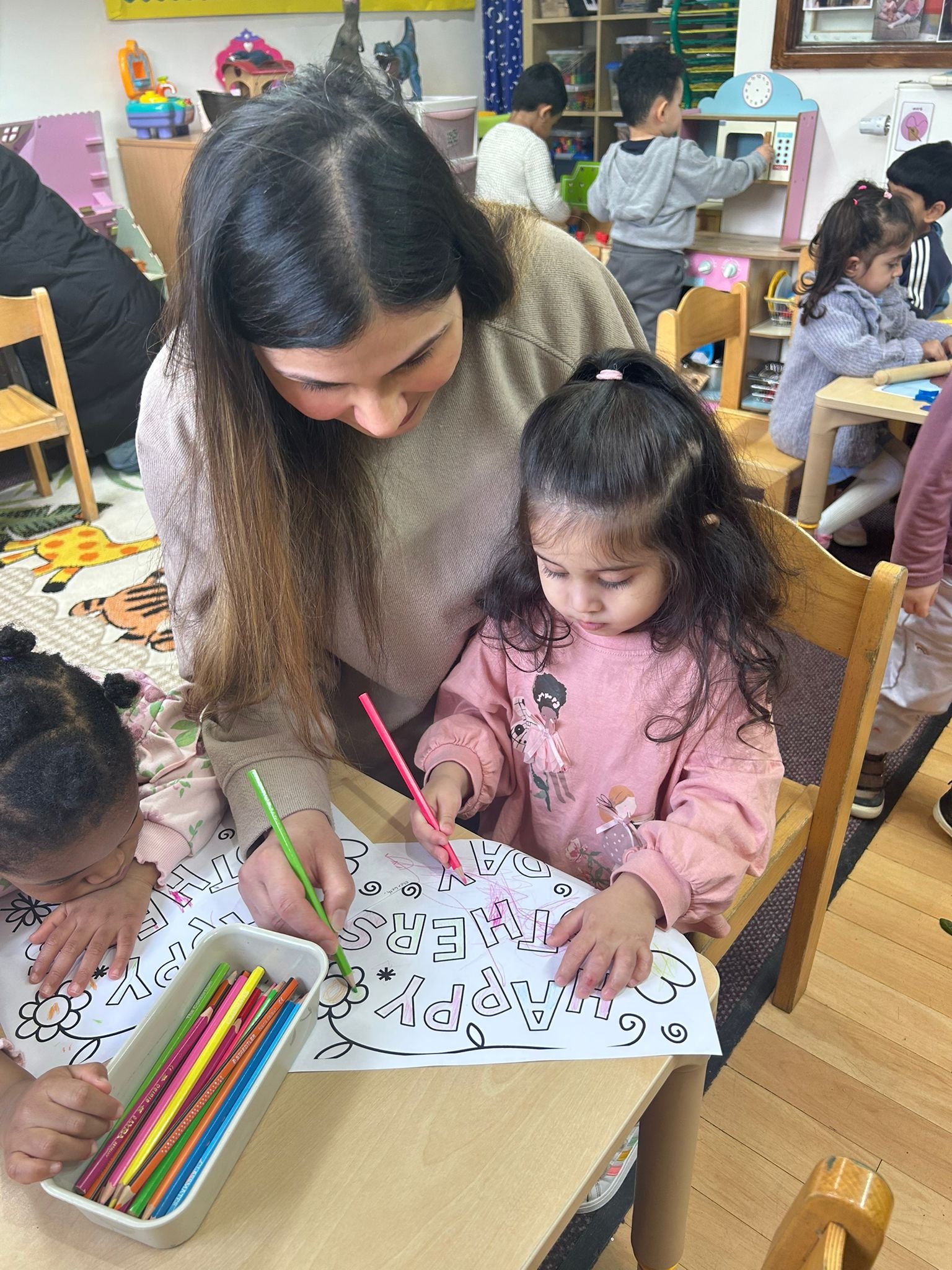 This morning we enjoyed our Mother’s Day Stay and Play session. It was lovely to welcome the mothers into the setting and see them taking part in the activities alongside the children. The children were very excited to share their learning, and everyone particularly enjoyed joining in with our French lesson. Thank you to all the mothers who attended and helped make the morning so special.